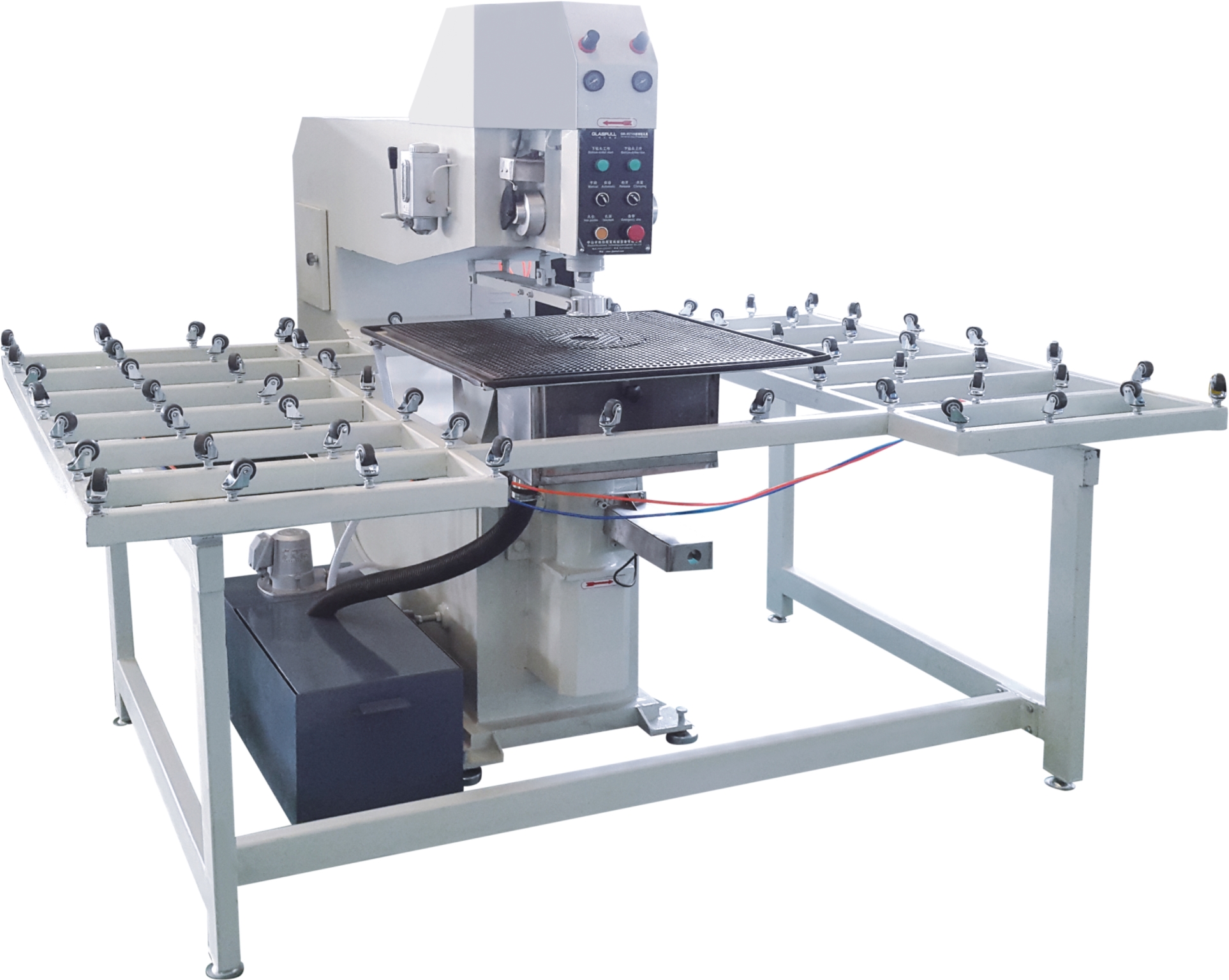 GM-WZ125P drilling machine adopts the programmable PLC controller design, can adjust up and down drilling bit and automatic feed speed, manual and automatic are optional, and there are active positioning device, laser positioning device, pneumatic working table with pre-positioning function is used to support big size glass sheet,GM-WZ125 is economy type with upper driller manually.